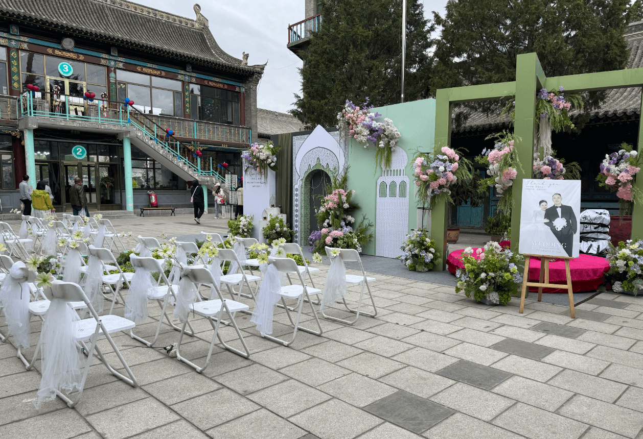 而回教这边,清真大寺、望月楼的风格,则完全不是印象中清真寺的样子;甚至刚好在清真寺里遇到回民婚礼,新人照片上也是西式婚纱的穿着,民族融合体现得很明显。
