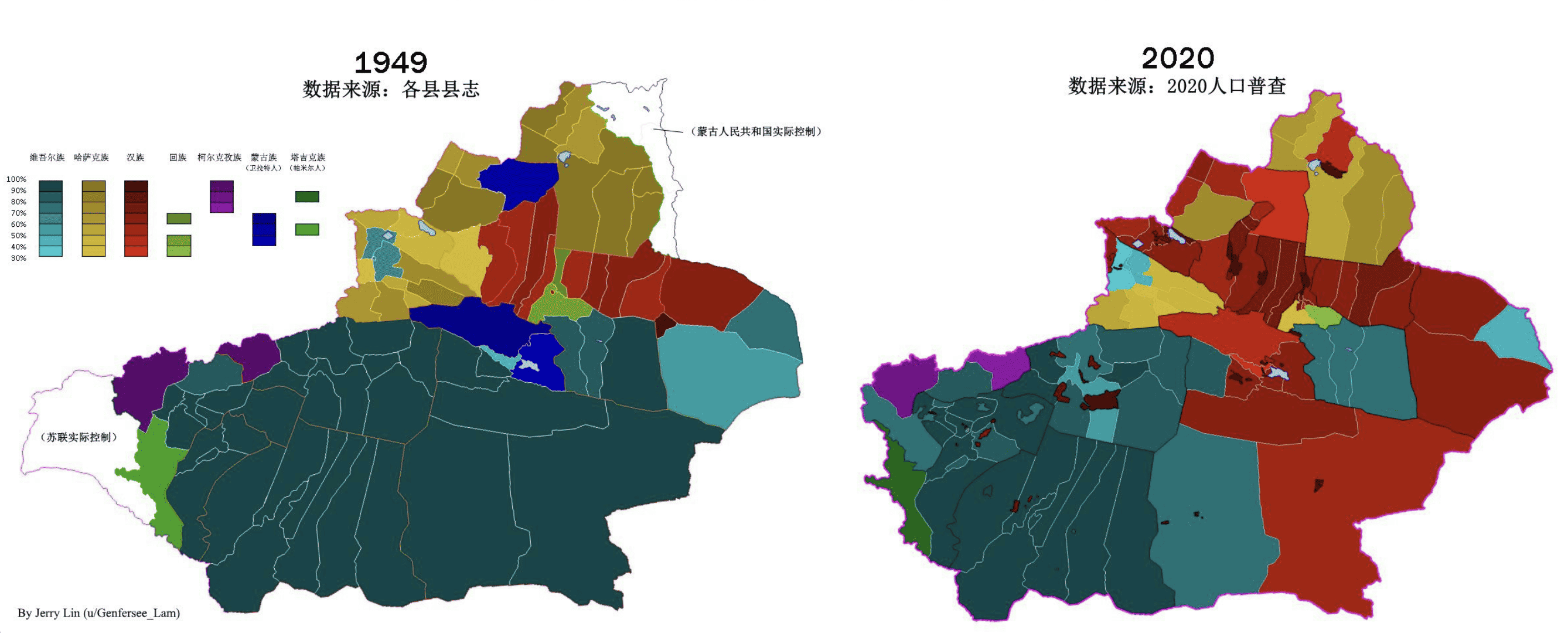 我难以通过外貌分辨这两个民族,他们的信仰也都是伊斯兰教,但从民族定居方式来讲,维吾尔大部分是定居的农耕民族,依赖天山、昆仑山发源的内流河,在盆地耕种。而北疆的准格尔盆地则没有那么干旱,纬度更高,因此哈萨克族更多是游牧。