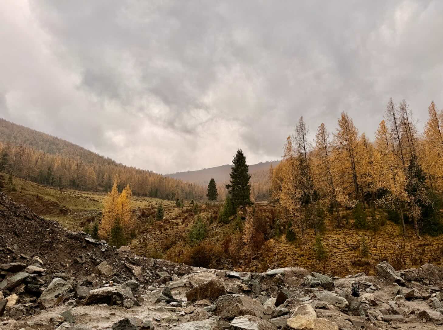 阿勒泰到禾木的 G618 阿禾公路是今年新通车的,秋色比较好看,我们行程里特意安排了走这条公路。但前一天收到景区通知,这边已经开始下雪,建议换雪地胎才上,让我们有点担心。