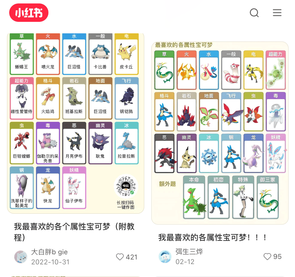 海报图片的峰值都曾经单日破 10w 用户访问,在贴吧、微博、小红书刷屏,图鉴在游戏上线后的两三个月时间一直保持 10w+ 的日活,是全网用户量最大的图鉴,但其实产品设计开发只有我一个人(资料和运营的部分有另外的、也是宝可梦爱好者的同事来负责)。
