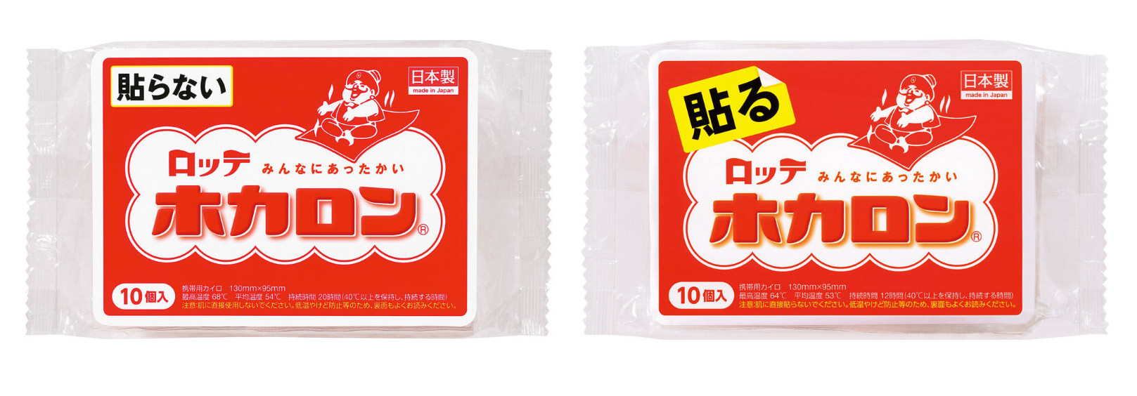 上次秋天在日本,气温有点冷,于是想去便利店买两片暖宝宝,看到货架上有这样两款产品,除了右上角的标签不同,包装几乎一样。我们只能看懂“贴”字,用 iPhone 系统相机也没有翻译出来,于是随手挑了左边这款。回到酒店拆开包装才发现,原来这款是不能贴在身体上的!只能用手捂住使用,很麻烦。我们想当然觉得暖宝宝都是能贴的,而且两款的上面也写着“貼”呢。