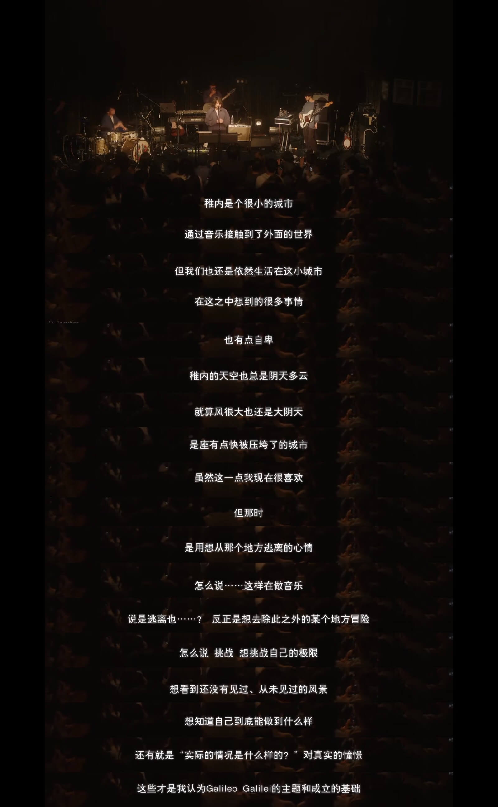 这支乐队从他们初中时候(2007)成立,在 2010-2012 年开始被人们熟知,这时他们其实还没有成年(日本 20 岁才成年)。因此早期的音乐,主题都很积极向上,想要逃离小镇到外面冒险、看见更大的世界和风景。直到 2016 年乐队宣布终止活动,因为转变为工作、是为了“让人生变得更好”的话,冒险就该结束了。